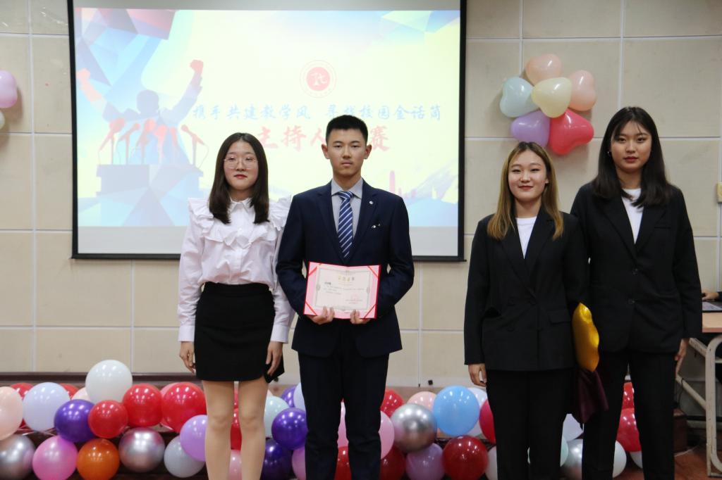 本次比赛分为自我介绍、创意主持和灵活应对三个环节,参赛选手依次上场,在一分钟的限定时间内,通过精妙的语言、新颖的形式,充分展示了自身优势和特点,力争给观众留下深刻印象。在第二、三环节,选手们快速反应,逻辑思维清晰,发音标准流利,展现出了自身较好的语言魅力与主持风范。对于主持中的突发情况,选手们临阵不乱、沉着应对、灵活应变,巧妙地化解了现场问题。选手们精彩的表现和强大的综合素质,不时引发现场观众的阵阵掌声,也将现场气氛推向高潮。经过近两个小时的激烈角逐,比赛在大家掌声中落下帷幕,刘雨鑫、田子宁、王云天分别获得了比赛的一二三等奖。