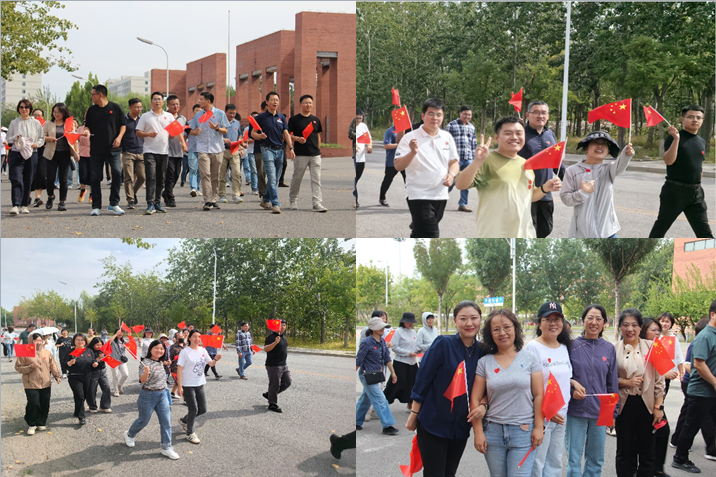活动伊始,院长白国义发出“出发”指令,老师们集体从学校南门出发,一路沿知行道、思成路、健行道、大成路、日新道、明理湖健步走,最终到达新体育馆。在秋意渐浓的美丽校园,老师们用矫健轻快的步伐走出“7”和“5”的字样,向祖国献礼。