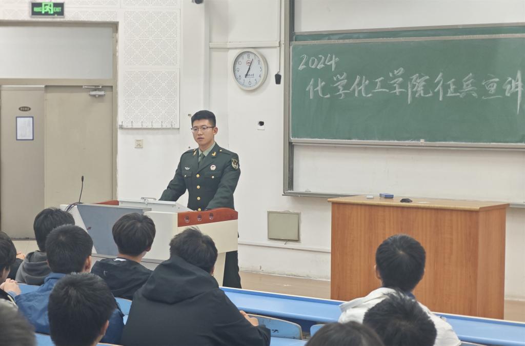 宣讲会上,董浩围绕国防基础知识、征兵报名条件与流程、入伍优待政策等内容,详细介绍了大学生在应征、服役及退役期间所享受的优抚政策与注意事项,鼓励在场同学们积极响应国家号召,融入军旅生涯,立志保家卫国。