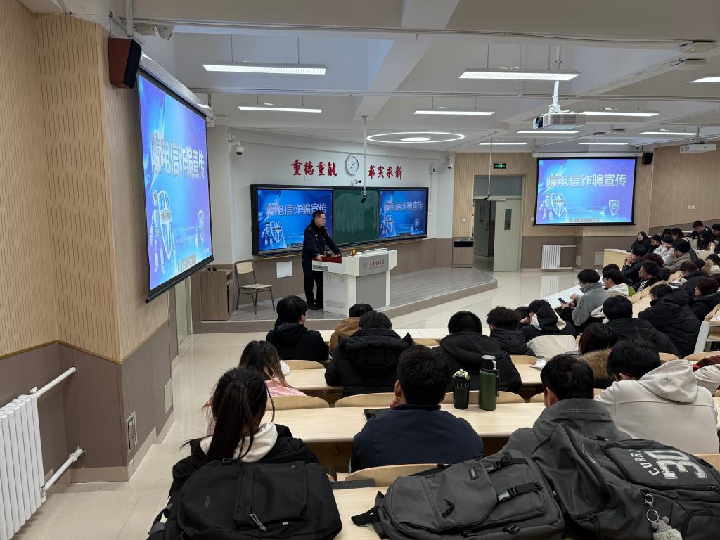 为切实提升学生防范电信网络诈骗的意识和能力,筑牢校园安全防线,近日,我院特邀学苑派出所警官赵巍走进校园,面向全体班长、团支书及班级安全联络员开展了一场生动深刻的专题宣传教育讲座。