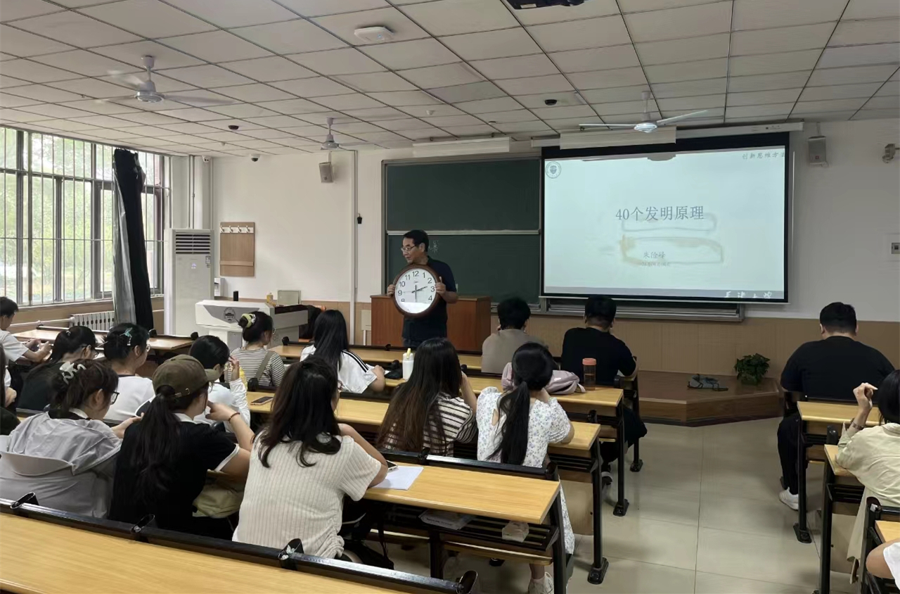 讲座上,朱险峰教授以深厚的理论功底和丰富的实践经验,深入浅出地讲解了TRIZ创新方法的基本原理和应用方法,剖析该方法在解决企业生产中复杂技术难题、推动科技创新方面的关键性作用,并通过不同领域和行业的创新实践案例,展示TRIZ创新方法在实践中的具体应用和独特优势,为在场师生提供了宝贵的参考经验。同时朱险峰教授结合当前科技创新的发展趋势,分析了TRIZ创新方法在推动社会进步和经济发展中的重要作用,在场师生纷纷表示受益匪浅。