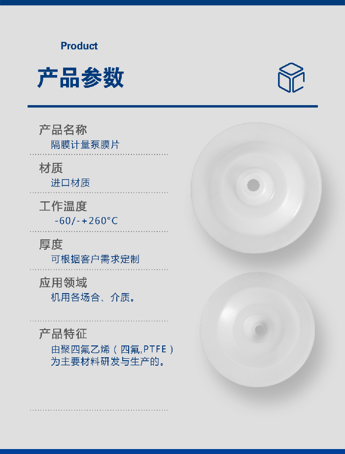 专用计量泵设备PTFE膜片 - 此配件是由四氟(PTFE/聚四氟乙烯)材料研发生产而成的,用于泵类如气动隔膜泵、计量泵等,阀类,规格尺寸可定制!
