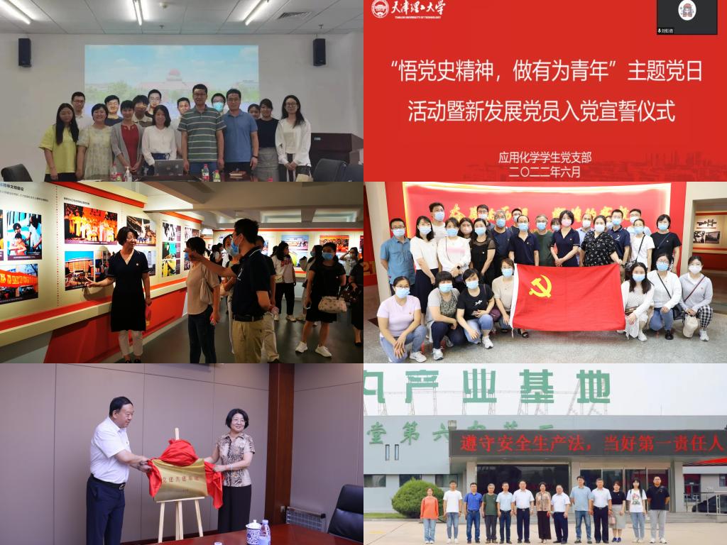 重践深悟,凝聚奋进前行的精神力量。学院党委坚持以学促行、以学促干,组织多种多样的主题活动,让师生在实践中凝聚奋进的精神力量。6月23日,学院应用化学学生党支部开展“悟党史精神,做有为青年”主题党日活动,并举行新发展预备党员宣誓仪式;7月1日,学院党委组织“庆七一、喜迎党的二十大”主题知识竞赛,不断提升师生党员的理论知识水平;7月5日,学院制药药学学生党支部与南开大学药学院研究生党支部开展“联学共建聚合力,携手同心促发展”支部共建主题党日活动,依托以研带本、支部共建、院校协同等方式,谋求凝聚力、促发展、创一流;7月13日,学院党委组织教师党员开展“喜迎二十大 奋进新征程 追寻使命之源”主题红色教育活动,感悟时代责任担当,汲取奋进力量。7月19日,学院党委与津药达仁堂(原中新药业)第六中药厂党委举行党建共建活动,并举行党建共建基地揭牌仪式,实现了资源共享和“1+1>2”的效果。广大师生党员纷纷表示,在学思践悟中不断坚定理想信念,在奋发有为中践行初心使命,建功新时代。