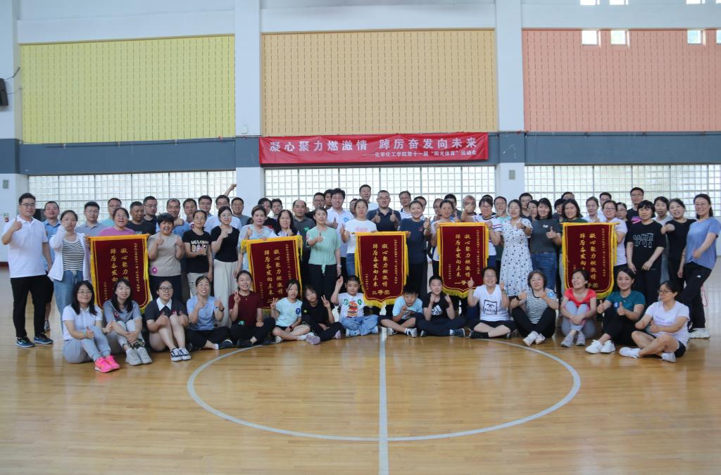 运动会采用团体积分赛的形式进行,化学工程与工艺系、应用化学系、制药工程系、基础化学系和实验中心共五个队伍参加,设有“摸石头过河”“两人三足”“不倒森林”“一圈到底”“拔河”5个比赛项目。比赛现场气氛欢快、热闹非凡,各参赛队伍默契配合,全力以赴,共克难关。经过激烈的角逐,按照项目积分总和排名,最终制药工程系获得第一名。
