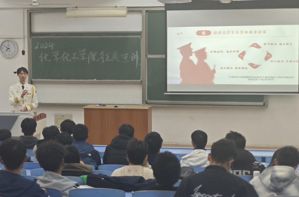 宣讲会上,董浩围绕国防基础知识、征兵报名条件与流程、入伍优待政策等内容,详细介绍了大学生在应征、服役及退役期间所享受的优抚政策与注意事项,鼓励在场同学们积极响应国家号召,融入军旅生涯,立志保家卫国。