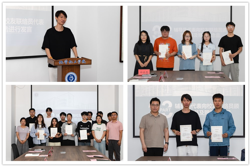 活动伊始,学院校友工作负责老师紧扣化学学科特色,以“氢”元素为引,对活动主题进行深刻阐释,并就校友认证工作进行细致讲解,着重强调校友认证的重要意义。随后,2025届校友联络员代表董浩上台发言,他饱含深情回顾在校时光,表达对学院培育的感恩之情,并郑重承诺将积极履行联络员职责,全力搭建学院与校友沟通的桥梁,以实际行动为学院发展贡献力量。接下来,毕业班辅导员依次为校友联络员代表颁发聘书并赠送纪念品。每一份聘书都承载着学院的信任与期待,激励着校友联络员们勇担使命,积极发挥纽带作用。