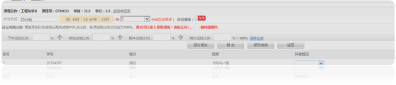 1, 同一课程号下,各教学班所设定的成绩比例必须相同,并且要和教学大纲一致。本学期阶段性考核成绩比例参考教学大纲说明,录在“期中成绩”一栏。有实验课的课程,实验成绩录在“其他成绩”。