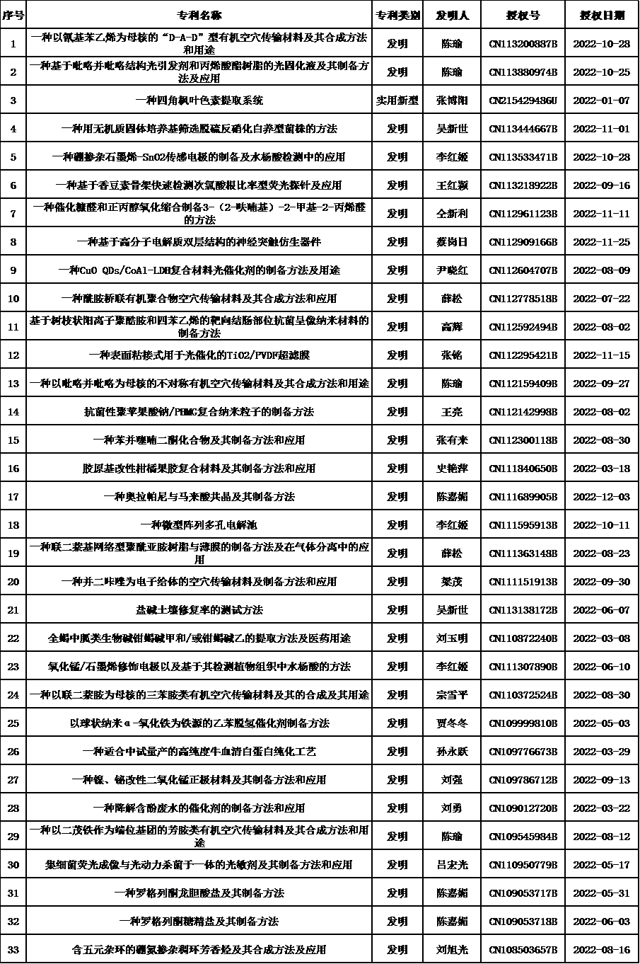 2022年我院授权专利一览表
