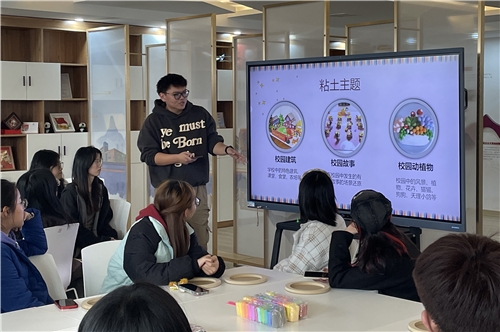 活动开始,主持人简单介绍了制作要求,随后学生们结合自己的创作主题选择了不同颜色的粘土材料,用富有创意的头脑和灵巧的双手,给粘土赋予新的生命。创作过程中,伴随着轻柔舒缓的音乐,学生们发挥出丰富的想象力,按照揉、捏、搓、贴等制作步骤将粘土塑造成型,把钟楼、图书馆、办公楼、明理湖、天理小鸽等活灵活现的呈现出来。