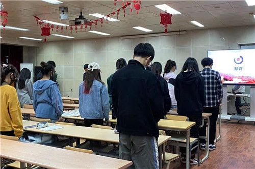 百年征程波澜壮阔,百年初心历久弥坚。活动伊始全体同学为百年奋斗征程中牺牲的革命先烈默哀一分钟。随后通过观看爱国影片、讲述革命故事和诵读烈士家书等,感悟革命先烈的伟大精神、党的光辉奋斗历程和伟大成就,鼓舞新时代大学生要传承红色基因从百年沧桑巨变中汲取奋进力量。
