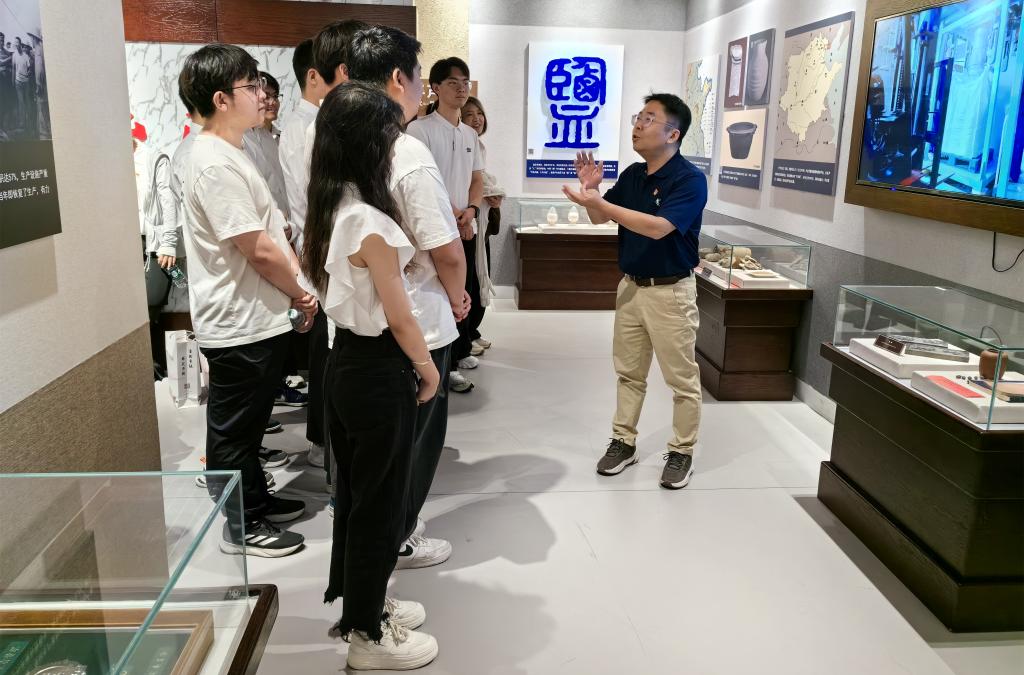 “你们知道北方最早的海盐盐场在哪里吗?你们听说过芦台场吗?你知道盐业制度的发展对于塑造一个统一的中国、对于构筑中华民族共同体的重要性吗?”在企业盐业文化展览馆内,马克思主义学院教师杨凡结合展示内容,围绕天津盐业历史、制盐技术演变以及天津近现代工业发展历程,讲述天津在中国近现代历史中的重要地位;尤其从中国盐业史纵论大一统国家的成型壮大与长治久安,而中华文明的五大突出特性也能在数千年盐业史、盐制史中找到鲜活的例证和答案。并通过带领学生沉浸式体验“百年津工”发展,感悟“报国为民,发展实业”的爱国精神,讲授了一堂特殊的史论型思政课。