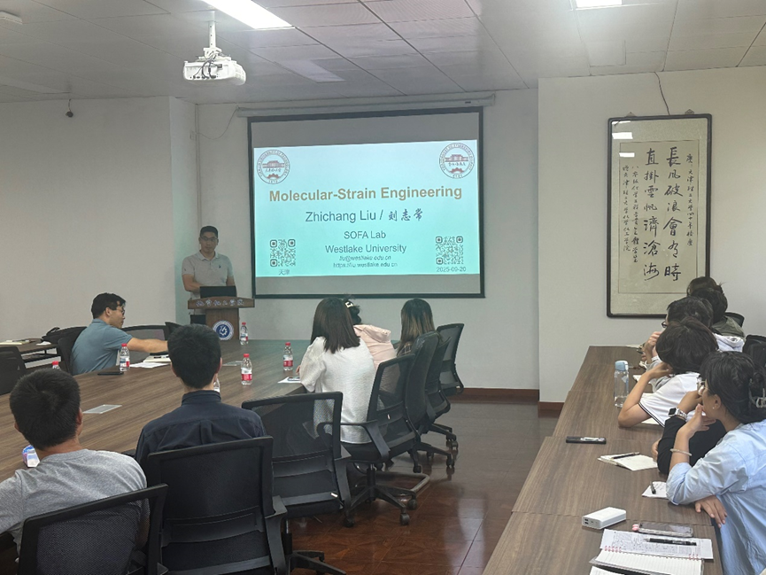 刘志常教授以《分子张力工程》为题,系统介绍了其团队利用张力作为调控手段,开发了以分子弓(弓形张力大环)为代表的张力分子体系:通过张力诱导的构象调控多维超结构分级组装;运用张力精准调控反应进程和选择性;利用张力调控分子的物理化学性质。利用分子张力工程策略实现利用常规手段难以实现的目标、构建结构新颖的功能材料,为进一步理解张力的调控机制提供了实验依据和理论基础。