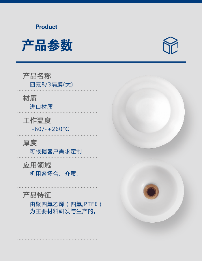 进口PTFE隔膜 - 此配件是由四氟(PTFE/聚四氟乙烯)材料研发生产而成的,用于泵类如气动隔膜泵、计量泵等,阀类,规格尺寸可定制!